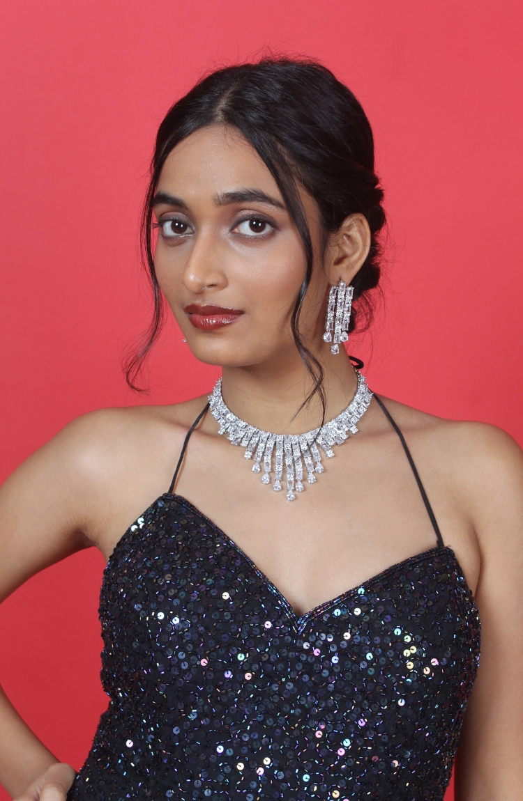 Be the first to review “American Diamond Style Crystals Necklace with Earrings Jewellery Set for Women”